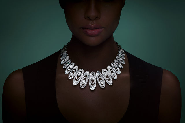 The imaginative design sets the butterflies at different angles, with each joined to the next by an almost invisible setting to create the illusion that individual butterflies are dancing on the ear. The Butterfly Silhouette collection features other stylish designs such as a long-length sautoir necklace and triple butterfly rings that wrap around the finger, alongside simple diamond studs, necklaces, bracelets and rings.